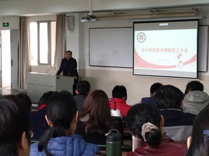 左志刚副院长对科研建设申报、学科建设等工作进行了相关通报。他鼓励老师们积极申报,多交流,不要“闭门造车”;介绍学科建设分为人才培养、师资队伍、科研、社会服务四部分。2017年,他建议大家一起撸起袖子加油干,一起锻炼身体,一起分享学院发展成果。汤胜副院长通报了研究生、行政、财务、工会等相关情况,他指出导师应严格把关,以推动研究生复试、MPACC案例大赛、论文答辩等工作顺利开展。蒋基路副院长指出“这个世界在残酷的惩罚不愿意改变的人”,激励大家不断前行,她布置了开学事宜,对17版教学计划修订、本科毕业论文、本科教学评估等工作进行详细介绍。