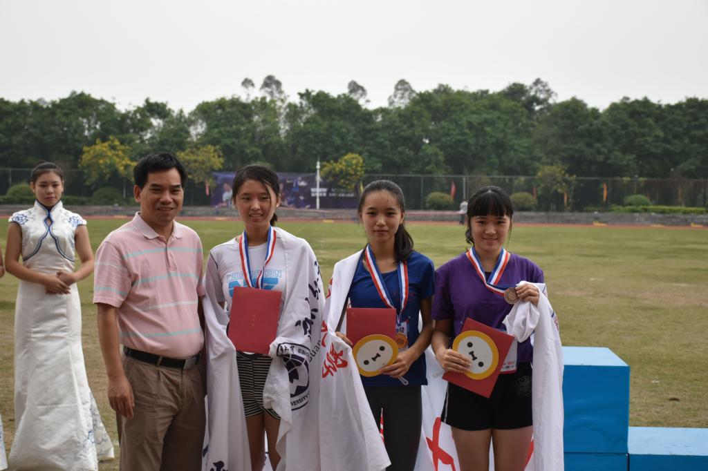 梁颖妍与夏婉珊一起站上领奖台(右二梁颖妍 右一夏婉珊)