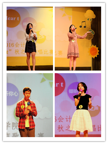 随后,主持人出场并介绍了本次比赛的主题和比赛规则。灯光渐亮,一号选手魏伊钰带来一首《心有独钟》,轻声低唱仿佛叙事,动情处轻闭双眼,一曲终了,赢得观众热烈的掌声;二号选手高伊琳挑战古风曲目《手掌心》,特别的音色一开嗓便令在场观众拍手叫好,让人回忆起兰陵王的故事情节,歌声也如手掌心一样温暖细腻;“当天边那颗星出现,你可知我又开始想念……”,三号选手杨士琛深情演绎《假如爱有天意》,表达了对爱的歌颂和祈祷;四号选手谢诗语以甜美绵细的声音诠释《一吻之间》如细雨滴入人心,给人留下美好的回忆。