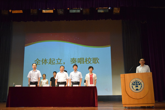 开学典礼至此进入尾声,奏唱校歌后,会议进入新生入学教育阶段。