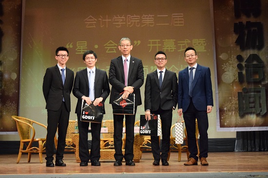 2016年3月24日下午三时,广外伟德bv国际体育第二届“星·会计”开幕式于B8学术报告厅正式举行。出席本次开幕式的有安永华明会计师事务所广州分所审计部合伙人黄寅先生,普华永道中天会计师事务所有限公司广州分所税务部高级经理张智营先生,上海德勤税务师事务所广东分所税务及商务咨询部总监谢少岚先生,毕马威企业咨询(中国)有限公司广州分公司咨询部总监杨育彬先生等来自四大会计师事务所的嘉宾,以及澳洲会计师公会华南办事处高级业务拓展经理邵杨帆先生,我校团委副书记刘郎老师,学生工作部部长助理、商学院辅导员刘富先老师,金融学院团委书记龙志成老师,伟德bv国际体育院长刘中华教授,副院长蒋基路副教授,党委副书记黄晓梅老师,会计系主任常量老师,财务管理系主任曾昭灶老师,审计系主任黄浩老师,以及来自各学院的师生。