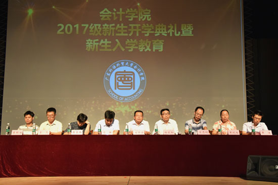 2017年9月4日上午10:30分,2017级伟德bv国际体育新生在大会堂迎来了他们的大学开学典礼,尽管天空不作美,一大早便下起了滂沱大雨,但是新生们依然准时有序地到达大会堂,因为今天的开学典礼对于他们来说,是神圣而又非凡的一刻。为新生主持开学典礼的是伟德bv国际体育党委书记孙家和教授,此外参加本次开学典礼的领导嘉宾有伟德bv国际体育院长刘中华、副院长汤胜、左志刚、蒋基路、党委副书记黄晓梅、会计系主任常亮、财务管理系主任曾昭灶以及审计系主任黄浩以及学工办的老师们。