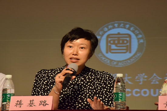 大会第二个环节则是由蒋基路副院长为17级新生进行专业介绍。她首先对文理科生在就读伟德bv国际体育是否会有基础上的差异进行分析解释,指出会计是一门文理兼修的专业,既需要理科细心缜密的信息处理过程,亦需要文科逻辑清晰的表达理解,无论是文科生还是理科生,在进入大学时,都将处于同一起跑线。而后又通过一个浅显比喻向同学们解释了伟德bv国际体育会计、审计和财务管理三个专业的区别,介绍了ACCA和CIMA创新班,并且说明了专业分流的程序与依据,为新同学们解开疑惑。还详细说明了广外作为一所国际化特色鲜明的大学与国外学校有哪些交流与合作,以及讲解“2+2”、交换生、单派等国际交流项目。最后,蒋副院长将“专注、归纳、泛读、改变”八字箴言送给同学们,愿他们成为优秀的人才。