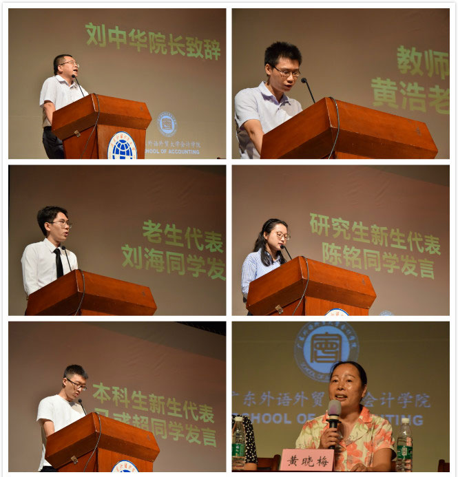 研究生新生代表陈铭则从一名研究生的角度出发,提醒同学们应当尽快适应与改变自己,在学校学习也应该与时俱进、融会贯通。而本科生新生代表马彧超则代表新同学们表明了遵守校规、自觉自律、树立目标、持之以恒的决心,认真学习,成为真正“凤鸣岭南”的人才。