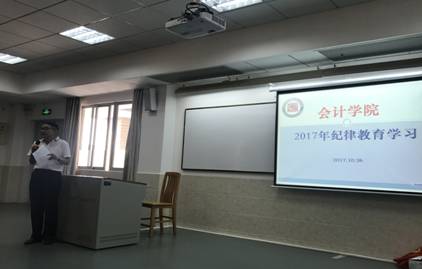孙家和书记围绕2017年纪律教育学习月“讲政治、强党性、严纪律、守规矩”的活动主题,结合学院的实际情况,要求全体师生加强宗旨教育、国家学校的规章制度教育、警示和示范教育,要求全院老师通过纪律教育学习月的学习切实加强师德师风教育和加强学生廉洁修身教育。