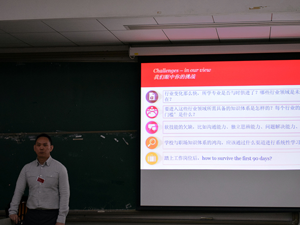 最后,颜志伟对同学们的求职问题和面临的挑战作了简要总结,鼓励同学们积极适应时代变化,做出具体可行的职业规划,充实自己,提升自己,在不断的学习锻炼中形成自己的竞争力。