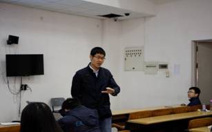 刘小清的讲话结束后,由吴翔师兄为同学们讲述了财务管理专业的职业前景。首先,他给出了针对财务管理专业切实可行的两条职业规划路线,并结合自己的学习经历和投行的工作经历说明会计专业和财务管理专业的不同点。然后,吴翔结合了自己在中明盛和的投资案例,讲述了数种投资方向和资本的投资方式