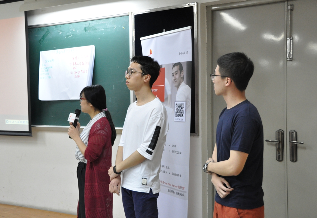 紧接着是模拟面试环节,康女士与两位面试者分别进行了三分钟的模拟面试。面试过程中,面试者自信坦然,表述流畅,受到了康女士和颜先生的好评。当然对于模拟面试环节中不足的地方,康女士和颜先生也提出合理建议:自我介绍过程中一方面要提前了解所面试的企业及其所属行业状况;另一方面要突出自身亮点。与此同时,在面试技巧方面,要与面试官有眼神交流。