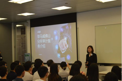 毕马威服务中心对本次的参观学习活动进行了精心的安排。首先,公司人力资源主管梁艳斐女士及其同事首先对同学们的带来表示热情欢迎,接下来,毕马威服务中心合伙人Tony Kong向同学们介绍了毕马威及毕马威全球共享服务中心的在佛山南海的发展历程和目前公司的基本情况。