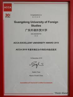 ACCA 2018年度华南区合作高校卓越成就奖