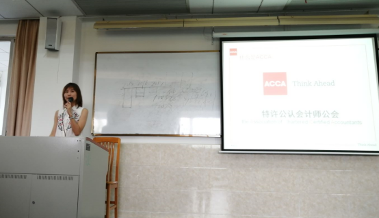 ACCA广州办事处Chole先通过性格测试与同学们互动,并让同学们思考,面对财务机器人的兴起,同学们将来的优势体现在哪,考取ACCA资格证书将变得越来越重要。会上,Chole女士着重介绍了ACCA的考纲及免考政策,同时也分享了ACCA可以为同学们提供的资源,如通过协会活动获得更多与人接触的机会、ACCA财会精英招聘会、ACCA职位公告板以及海外合作的院校等。