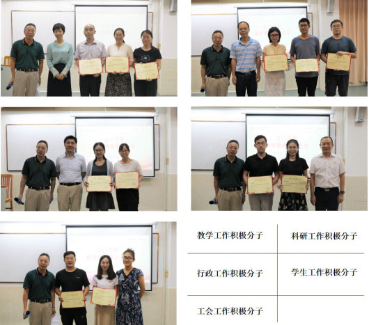 会议上,对 2019年教学工作、科研工作、行政工作、学生工作、工会工作积极分子进行表彰,学院领导为各位获奖老师颁发荣誉证书。