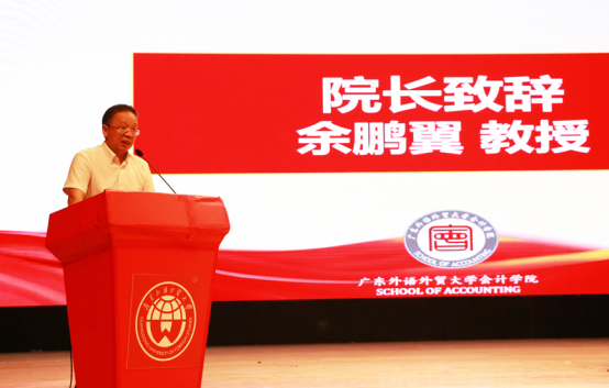 开学典礼在庄严的国歌声中拉开了序幕。院长余鹏翼在致辞中首先欢迎各位2020级新生加入伟德bv国际体育大家庭。随后,他对伟德bv国际体育发展历程以及近年来学院取得的成绩进行了简单介绍,多年来,伟德bv国际体育始终以“培养具有国际视野的财会精英”为使命,以“构建国际化特色鲜明的高水平伟德bv国际体育”为愿景,开创了“多语种+会计”的创新人才培养模式,为社会输送了许多具有国际视野的优秀财会人才。对即将开启人生新征程的2020级同学,余鹏翼院长提出了四点希望:一是希望同学们树立远大理想,胸怀报国之志;二是希望同学们勤奋好学,筑牢基础;三是希望同学们以诚信为本,践行社会主义核心价值观;四是希望同学们能够在学习生活中领悟“明德尚行,学贯中西”的校训,努力成为多技能、善沟通、会管理、有远见、敢担当,符合现代会计人才要求的社会精英,将个人的梦想与中国梦紧密结合,以梦为马,不负韶华。
