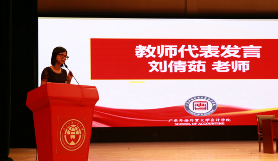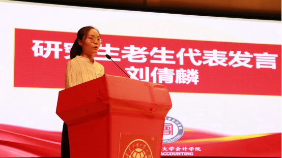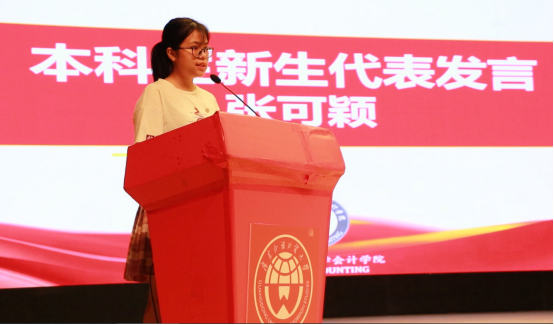 新生代表张可颖分享了自己对大学生活的理解,号召同学们从现在开始树立正确的职业目标,做到敬畏专业、敬畏学术、尊重导师、恪守规范、提升素质,养成更强的自我管理意识和自主学习意识。在生活中不仅要关心时事,了解历史,更要从中涵养气度、拓展视野,努力成为具有国际化视野的财会人才。她祝愿同学们都能用奋斗定义青春,书写多姿多彩的大学时光。