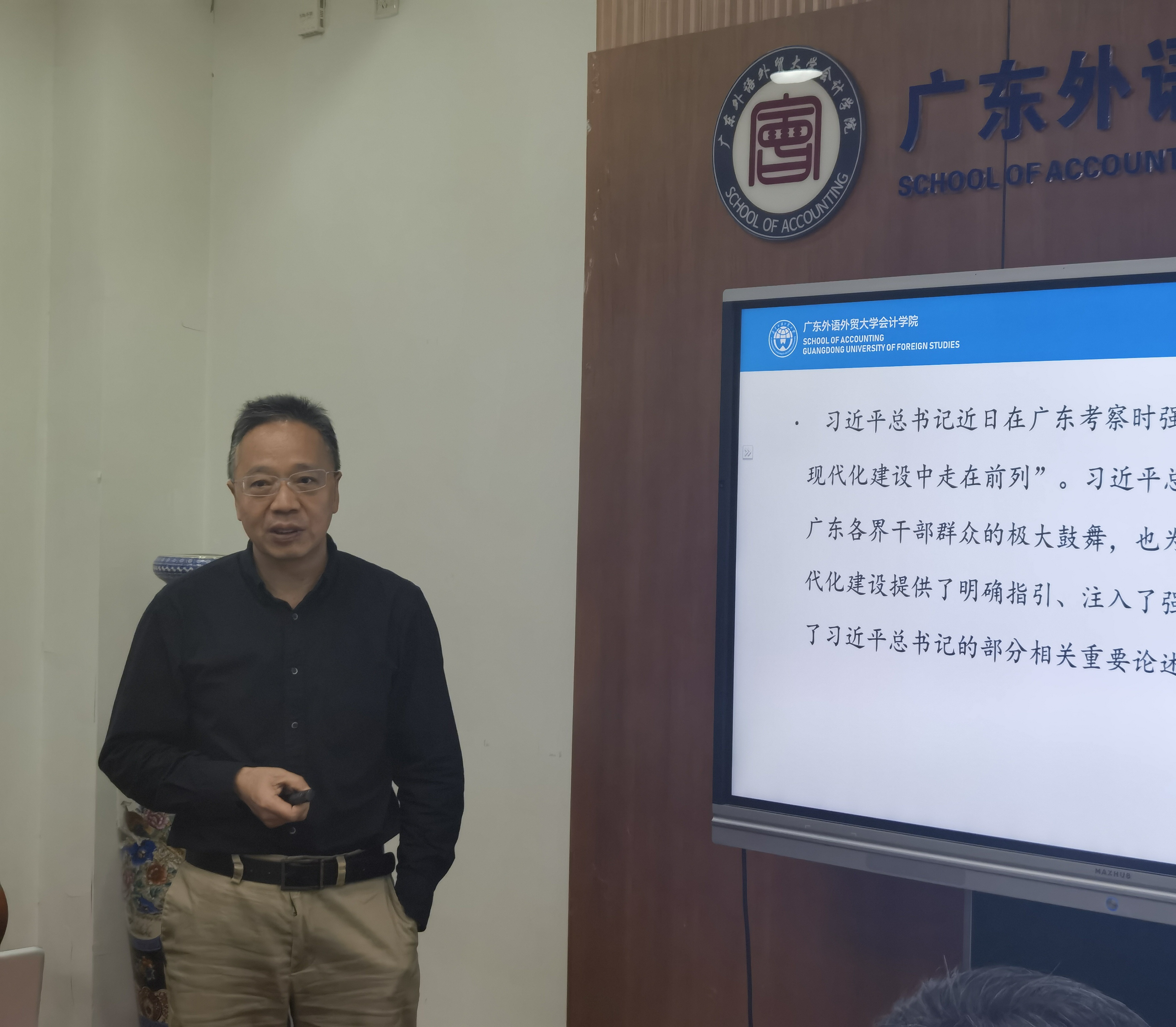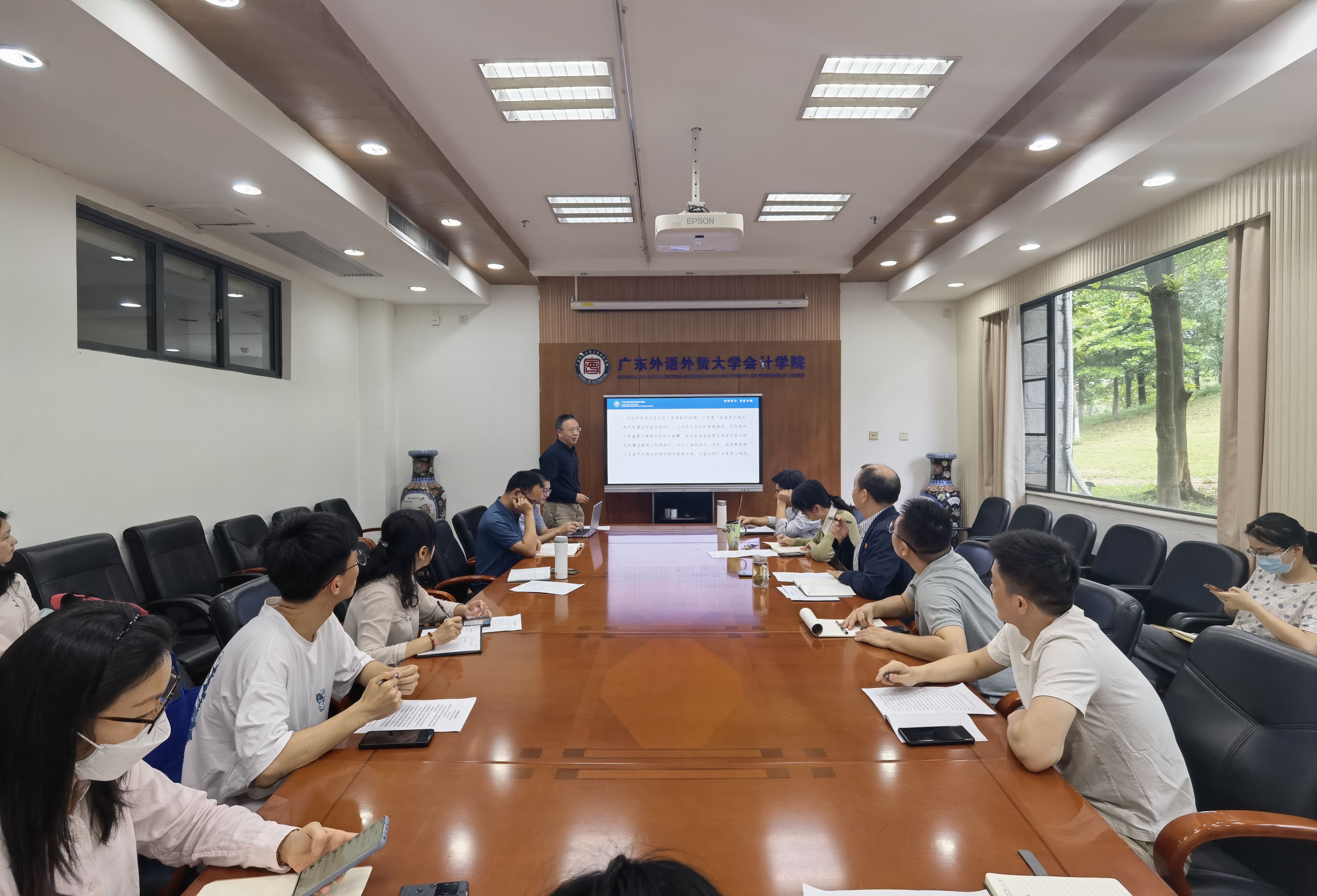 2023年5月8日,伟德bv国际体育党委在院系楼101召党委理论学习中心组(扩大)学习会专题学习习近平总书记广东考察重要讲话精神,学院领导、党委委员、各系部办主任、教工、学生党支部书记、党员师生代表参会,会议由党委书记黎冬主持,党委副书记、院长余鹏翼领学。