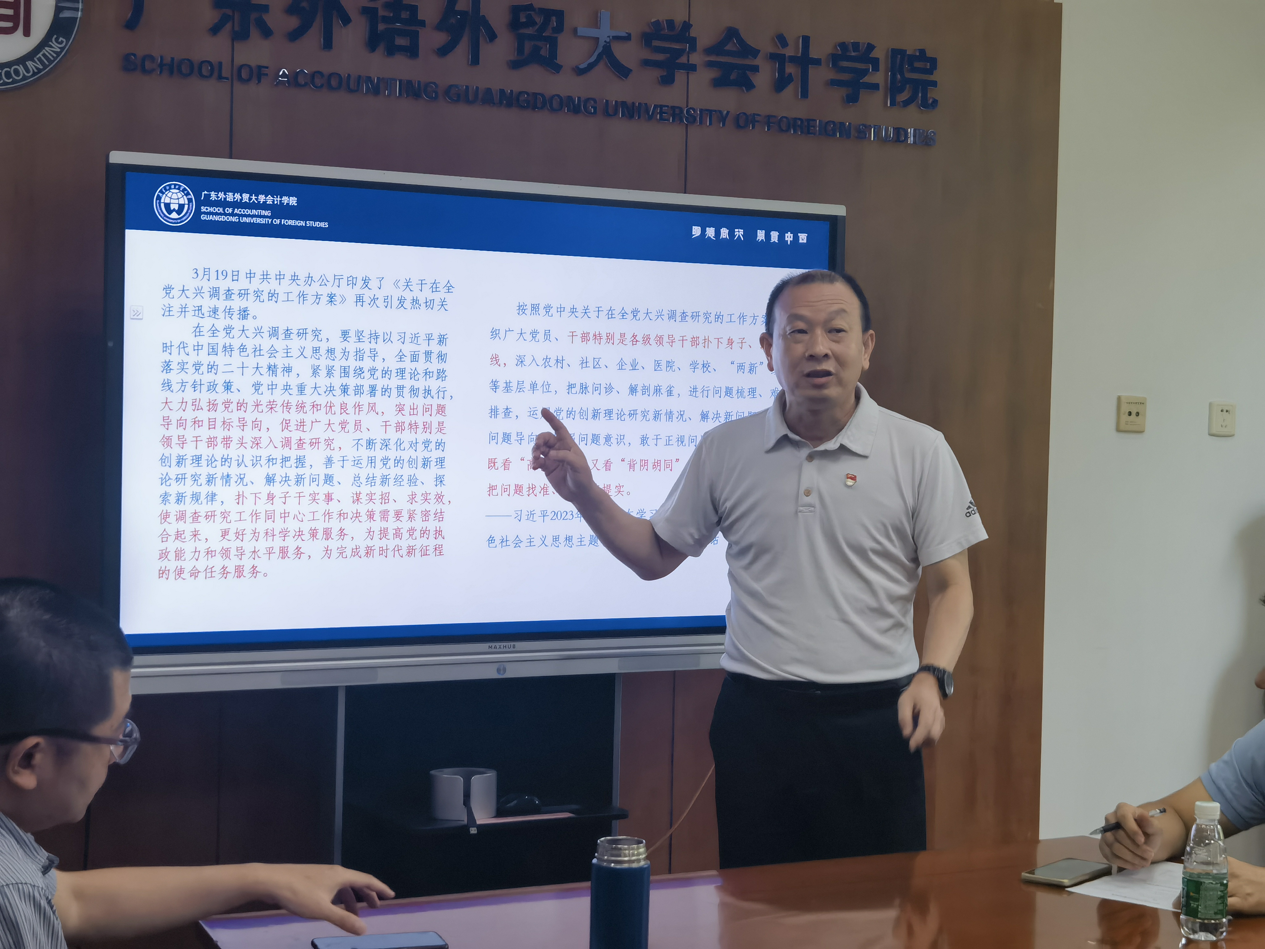 2023年6月5日,伟德bv国际体育党委在院系楼101召党委理论学习中心组(扩大)学习会,深入学习领会习近平总书记关于调查研究的重要论述,学院领导、党委委员、各系部办主任、教工、学生党支部书记参会,会议由党委副书记、院长余鹏翼主持,党委书记黎冬领学。