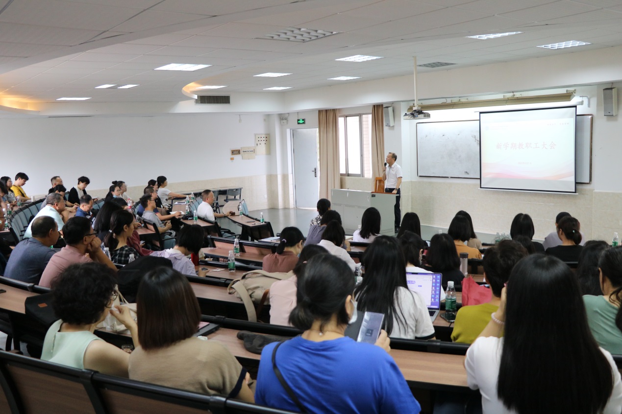 大会开始,黎冬首先介绍了本学期新加入学院的熊婉芳、黄欣怡、李新璐、应涵宇四位老师,对他们的加入表示热烈的欢迎。会上,黎冬指出,学院扎实开展学习贯彻习近平新时代中国特色社会主义思想主题教育,以立德树人为根本任务,不断推动学院BETVICTOR官网、学科建设、学术研究、人才培养、学生管理、社会服务等多项工作任务稳步向前,取得了显著的成效。他提出,新学期全体教职工要继续发挥党建引领作用,强化立德树人教育,积极推动课程思政、学科评估、工商管理博士点申报等各项工作的有序开展,凝聚全院力量集群攻坚推动学院各项事业再上新台阶。