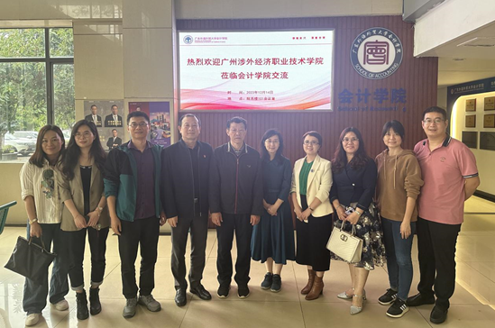 12月14日下午,广州涉外经济职业技术学院校长许国彬、商务管理学院党总支书记、副院长陈华娜、商务管理学院副院长何红梅等一行前来伟德bv国际体育进行调研交流。伟德bv国际体育党委书记黎冬、副院长黄浩、党委副书记李海琳、会计系主任曹瑜强等学院相关人员参与会议。