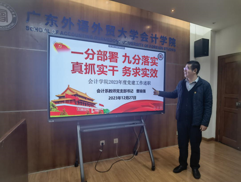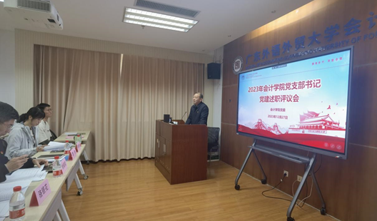 2023年12月27日,伟德bv国际体育在院系楼143召开2023年党支部书记党建述职评议会。金融学院党委书记徐昶斌、英语教育学院党委书记骆银花、伟德bv国际体育党委书记黎冬、副书记李海琳出席会议,并担任评委,伟德bv国际体育师生党支部书记、副书记参加了本次述职评议会,评议会听取了11位书记作工作述职报告,并由评委对述职人员进行现场打分,会议由伟德bv国际体育党委书记黎冬主持。
