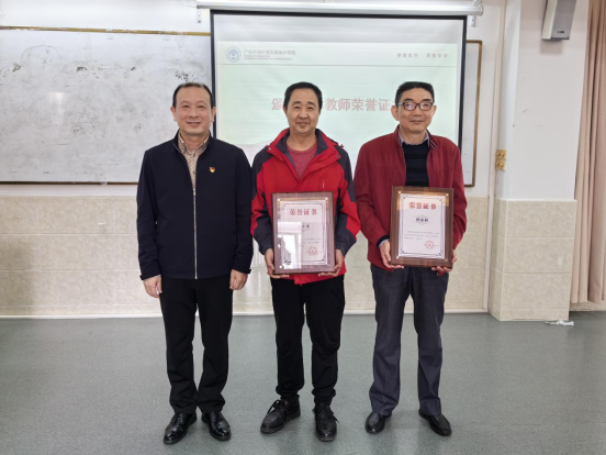 最后,学院领导为今年退休的孙家和、黄立华老师颁发证书,对他们为学院做的贡献表示感谢。