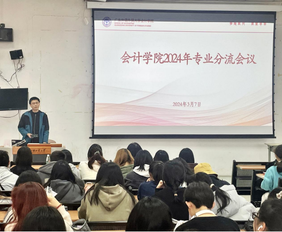 大会由主管本科教学工作的黄浩副院长主持,会上他宣读了2023级本科生专业分流原则,强调了不同专业在课程安排上有些微差别,但就业前景都非常不错,提醒同学们要合理规划时间,充实大学生活。接着,许红梅主任详细介绍了伟德bv国际体育财务管理专业的师资力量与科研成果、学生培养方案以及考研与就业前景;财务管理专业外请专家海伦堡地产集团财务管理中心副总经理、中国注册会计师张丽蓉介绍了智能化时代企业财务转型的趋势与动因、详细分析了学科课程与企业岗位相对应所需要的工作能力。然后,刘倩茹主任介绍了审计学专业的特色优势及就业前景等一系列问题,为同学们选专业提供了合理的建议;曹瑜强主任介绍了会计学专业的学科建设、师资力量、科研能力、就业前景及核心课程,让同学们对会计专业有了更深的了解。
