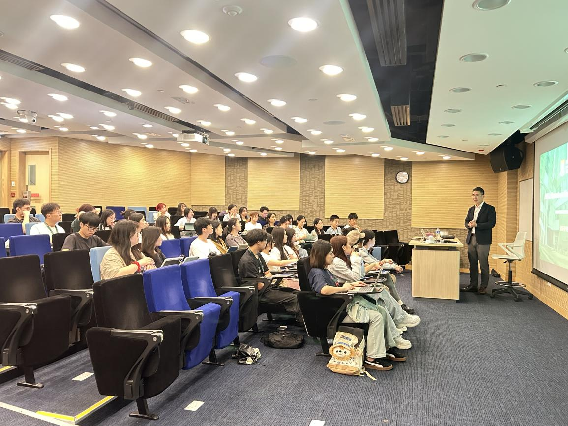 在本次访学行程中,同学们参加了五场全英专题讲座,涵盖了金融与会计领域的多个重要主题。第一场讲座由香港大学中国商业学院客席讲师、香港上市公司企划发展及投资部副总监关启正博士主讲,主题为“环球经济与金融市场分析”。关博士回顾了全球经济状况,展望了未来的发展方向,并分析了全球金融市场体系、金融发展与资本市场运作情况。