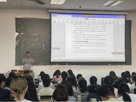 随后,各位参会老师结合自己的丰富经验和具体事例,为同学们提供了宝贵的论文撰写指导。刘儒昞老师根据学院的本科毕业论文指导手册,详细讲解了论文撰写的基本结构、内容要求、格式规范以及排版技巧,帮助同学们建立起了清晰的论文框架。