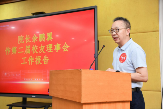 首先,院长余鹏翼作第二届校友理事会工作报告。他分别从校友联络、校企合作、协同育人、校友捐赠几方面对第二届校友理事会工作进行简要回顾,他介绍过去五年在学校校友总会的指导下,在伟德bv国际体育党委的领导下,伟德bv国际体育校友会理事会围绕校友会章程,搭建校友交流平台,加强联系,增进校友归属感,积极引导校友为学院的发展提供支持,为学院发展贡献力量。