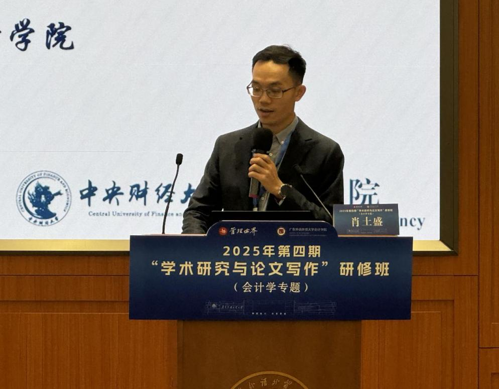 对外经济贸易大学副校长陈德球教授以《学术研究:问题意识、学理体系与阐述路径》为题,分享了他对学术研究的深刻见解。陈教授指出,学术研究的核心是从“知识搬运”向“知识创新”的转变,选题应兼顾学术原创性与实践相关性,并满足“重要、新颖、可行”三个核心标准。他强调,会计科学研究可从治理体系、市场机制、制度环境及经营管理四个方面寻找切入点,同时在国际视野与中国问题之间保持平衡。陈教授提出,获取国际视野需阅读经典文献、开展跨国研究,而理解中国问题则需深入探究中国的历史与结构,以及股票市场、制度环境及政府行为的特征。结合中国经济与全球融合的趋势,他提出了五个研究方向:政治力量与市场干预、非正式制度的作用、数字经济的影响、证券监管的政治化及可持续发展信息披露。在论文写作路径方面,陈教授详细阐述了各部分的撰写要点,为与会者提供了清晰的研究与写作指南,具有重要的启发意义。