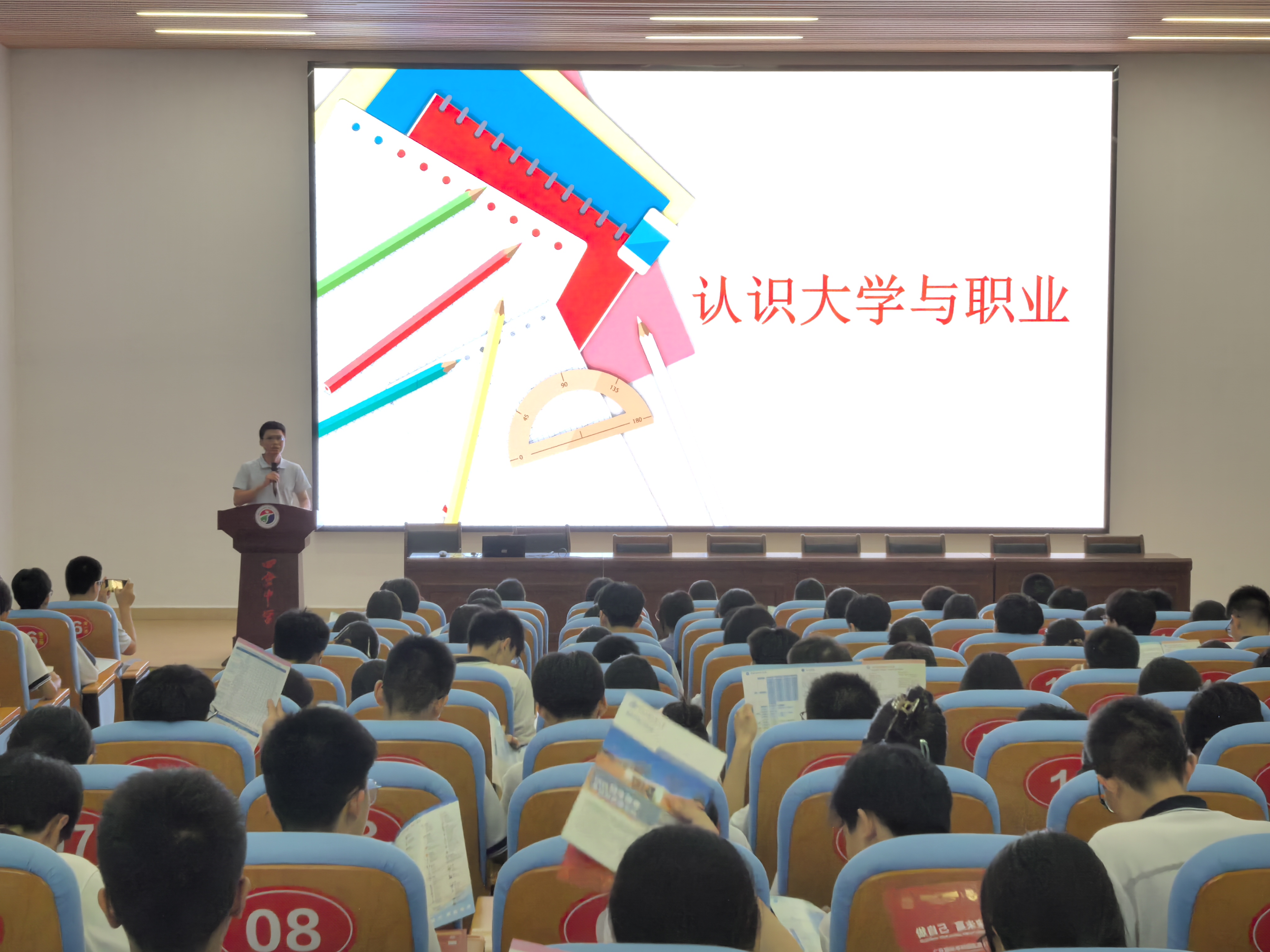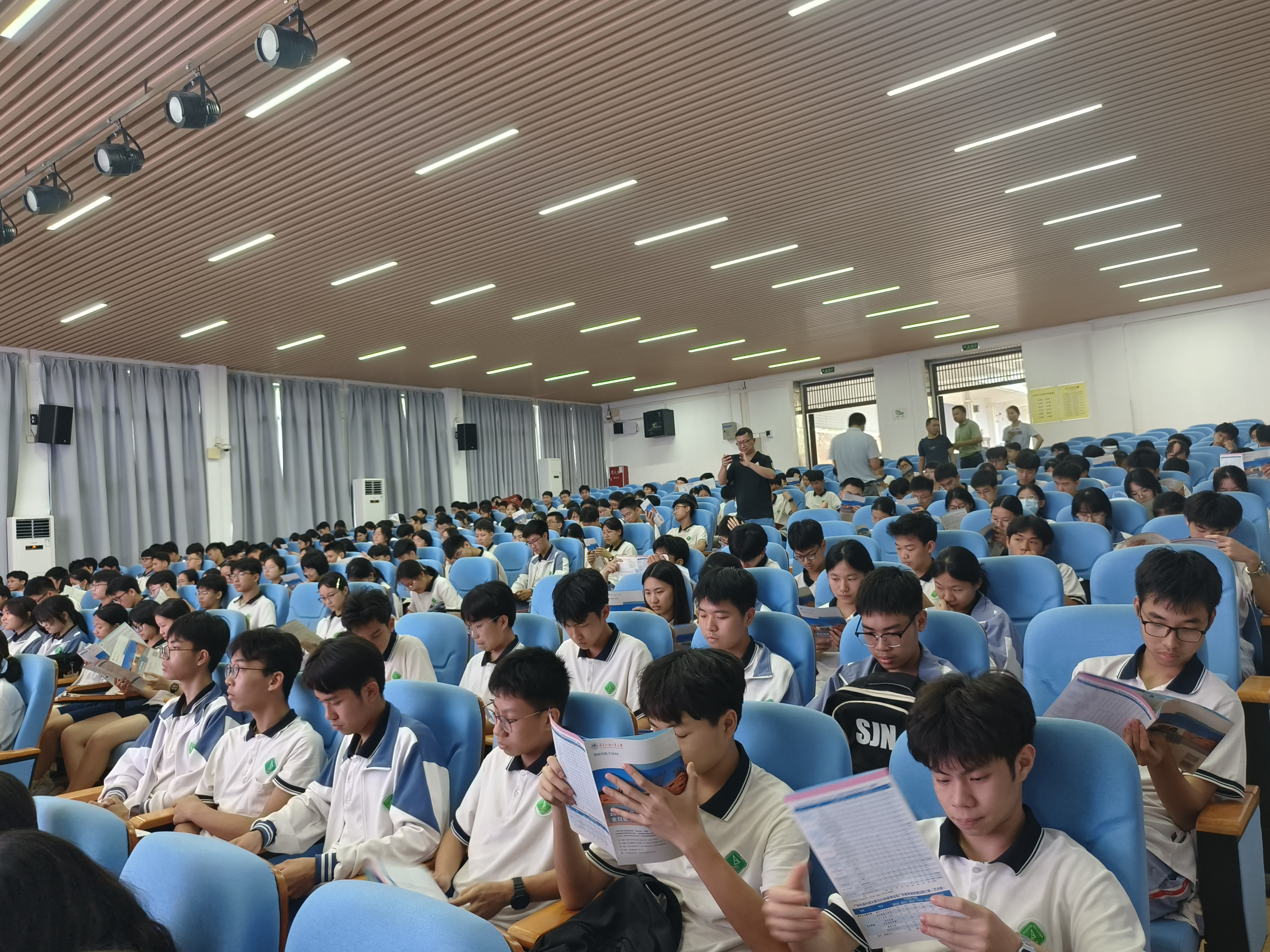 随后,在中学大礼堂,黄浩副院长以“认识大学与职业”为主题给四会中学师生带来精彩生动的职业生涯规划专题讲座,向师生全方位介绍了广外的办学特色与专业优势,深入剖析未来职业发展趋势,为同学们解锁个性化成长路径,为未来的选校、择业提供了指导,受到现场师生的高度认可。现场还发放近400份宣传材料,引发广泛关注。