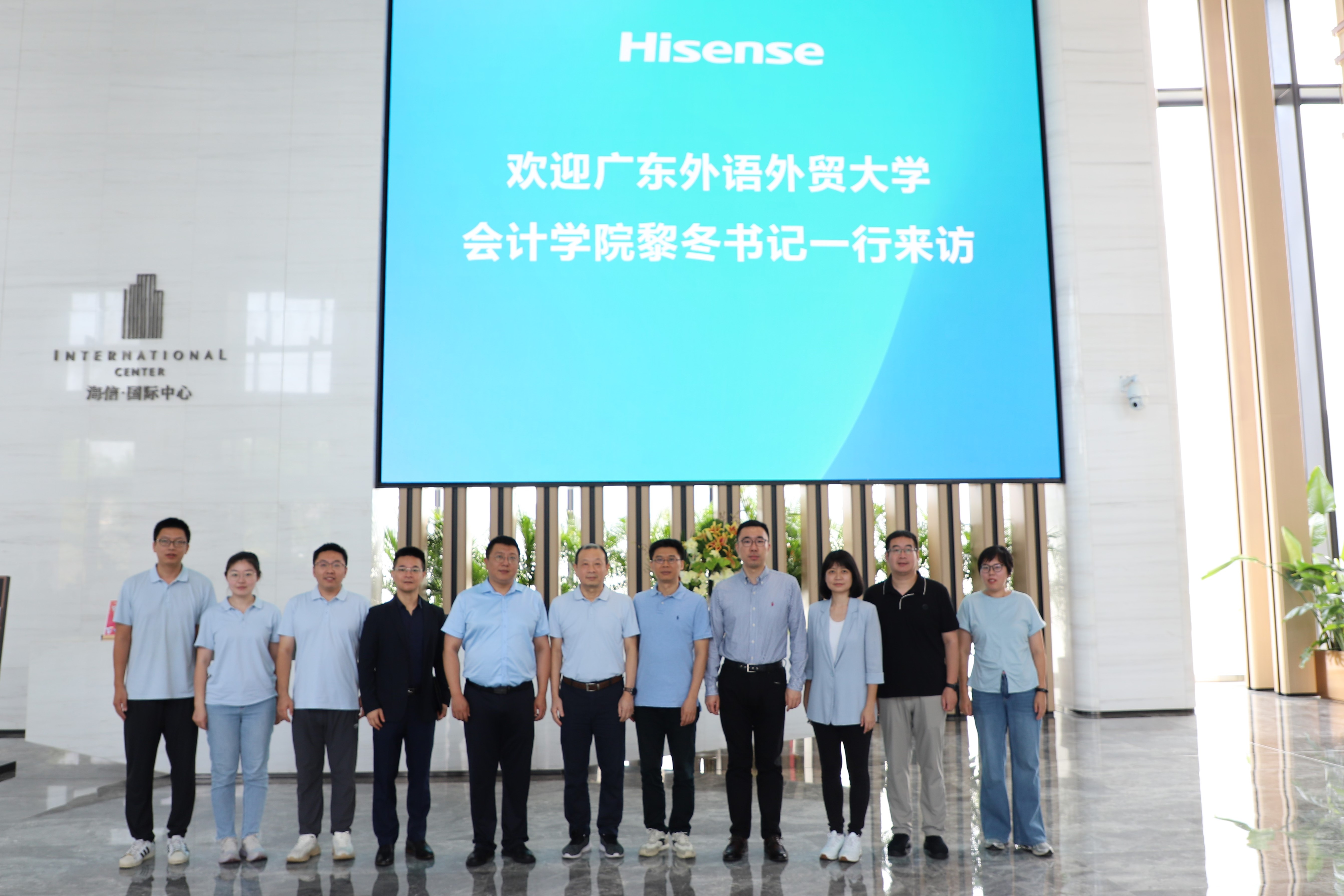 黎冬一行参观了海信集团,深入了解海信集团的发展历程及其相关业务领域的最新情况。海信集团人力资源部总经理杨硕重点介绍了集团的发展历程、品牌矩阵布局、校园招聘及人才培养计划,并就当前的人才队伍状况、未来的人才需求及标准等方面进行了介绍,同时也表示,当前企业海外业务发展迅猛,急需招聘更多外语能力强且专业能力强的复合型人才,希望学校能继续输送更多优秀毕业生,推动企业持续高质量发展。与会双方就行业发展动态、人才招聘、实习实训等方面进行深入交流。