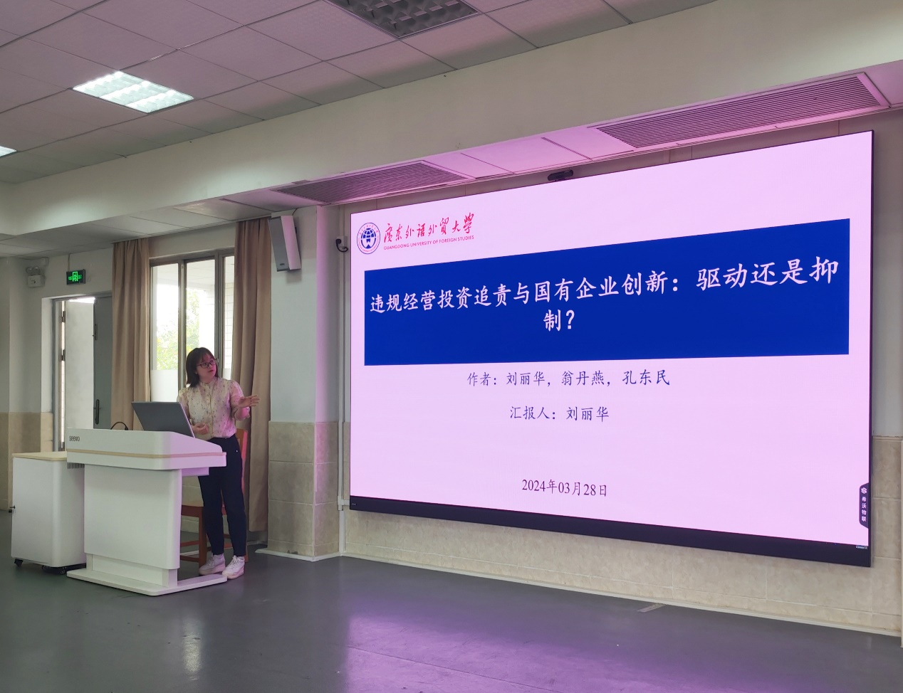 学术午餐会由伟德bv国际体育任柳杨老师主持,邀请刘丽华助理研究员作为主讲嘉宾,带来题为“违规经营投资追责与国有企业创新:驱动还是抑制?”的工作论文分享。刘丽华助理研究员是云山青年学者(A类),硕士生导师,主要研究方向为国有企业改革和资本市场。