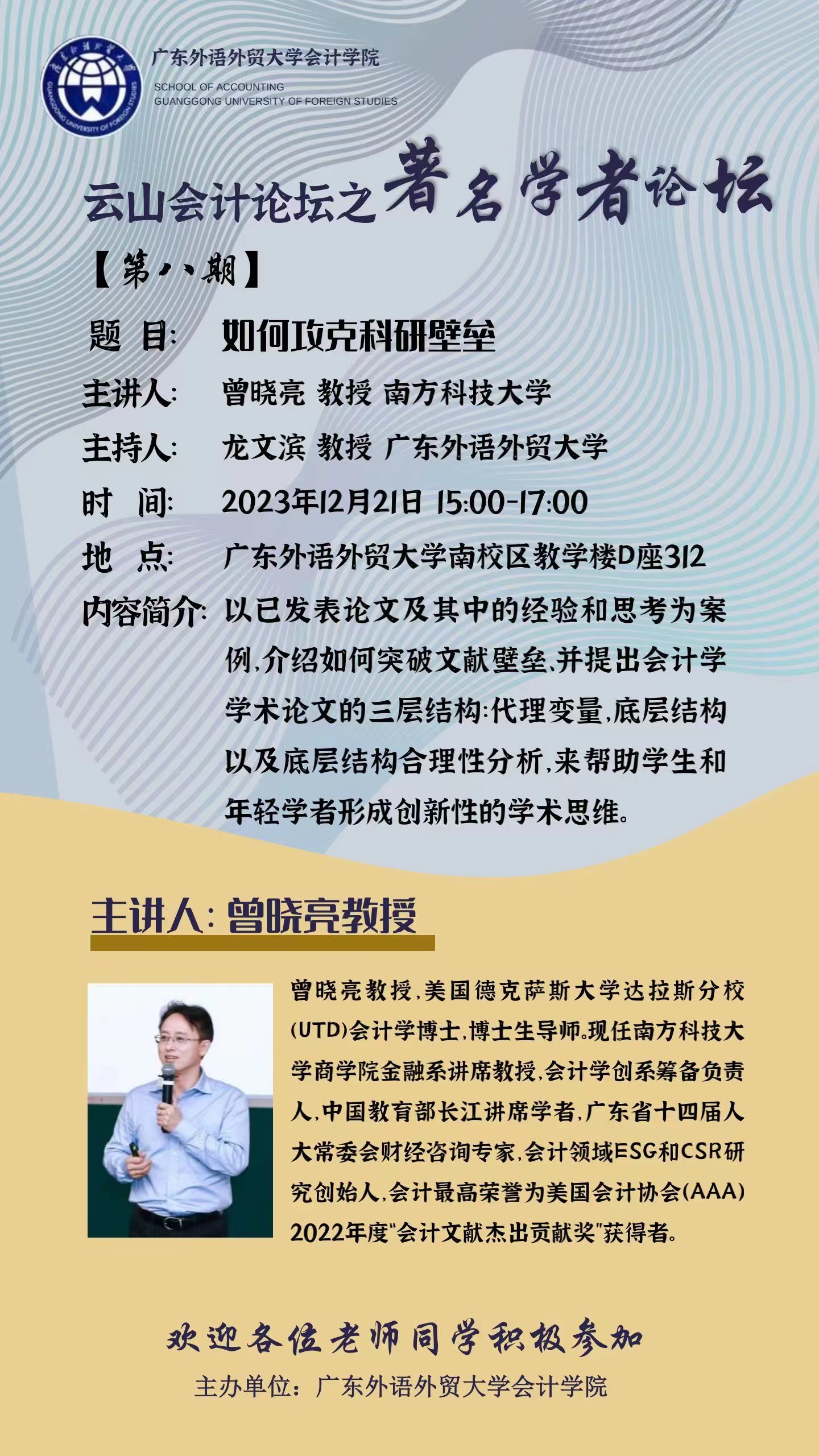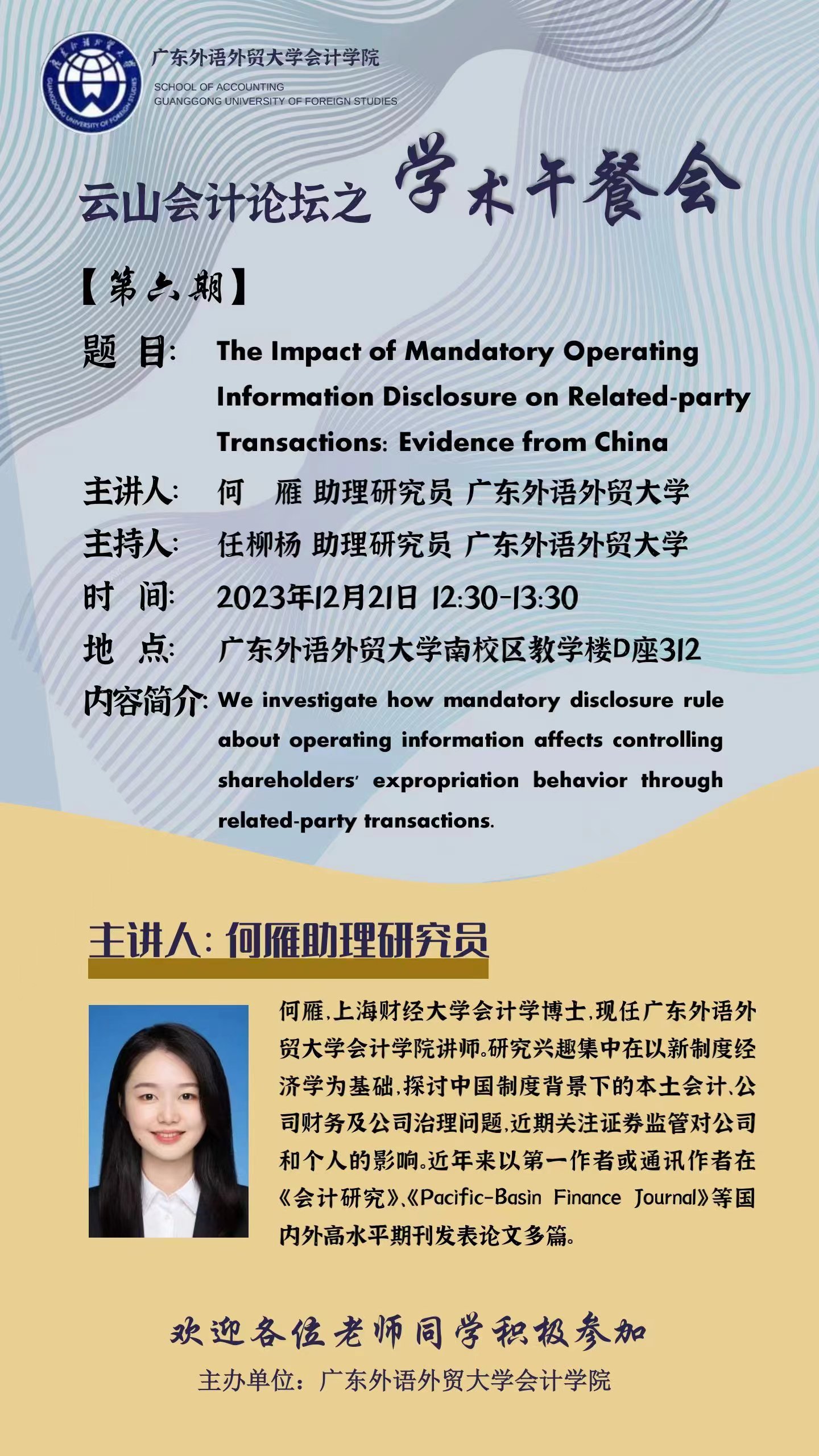 【讲座预告】云山会计论坛 第八期