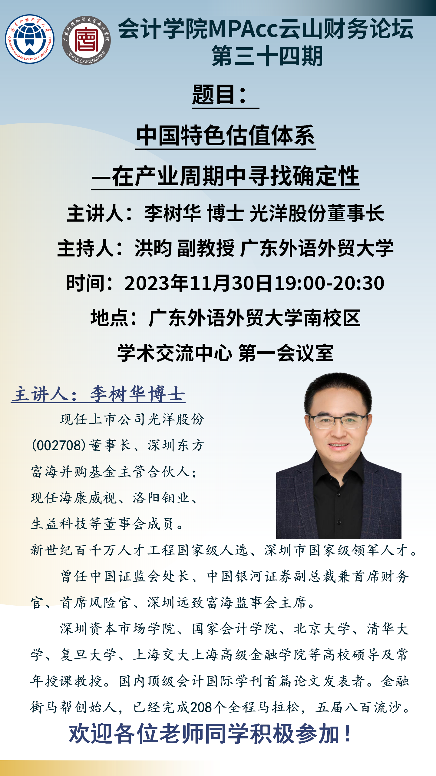 【讲座预告】伟德bv国际体育MPAcc云山财务论坛 第三十四期