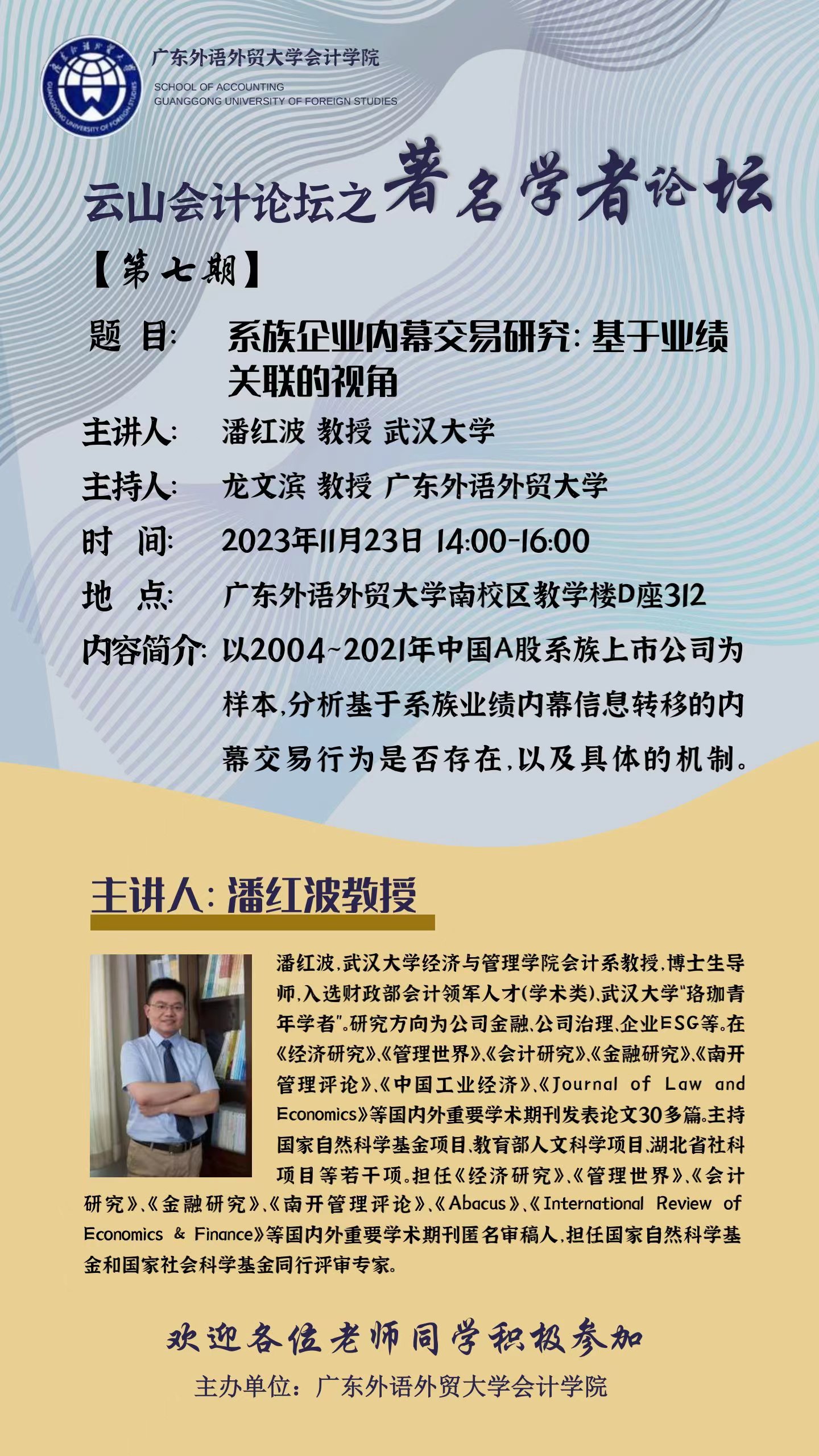 【讲座预告】云山会计论坛 第七期