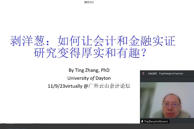 著名学者论坛于线上举行,由伟德bv国际体育龙文滨教授主持,邀请张霆教授作为主讲嘉宾,带来题为“剥洋葱:如何让会计和金融实证研究变得厚实和有趣?”的讲座。张霆教授是美国代顿大学经济与金融系教授,终身教授,金融硕士项目负责人;主要研究方向为公司金融与公司治理,美国和中国资本市场,担任多家国际期刊副主编、编委和特约主编,以及瑞士国家科研基金会和香港研发局特约评审专家。曾任外汇交易员和股票分析师多年,具有丰富的资本市场投资经验。