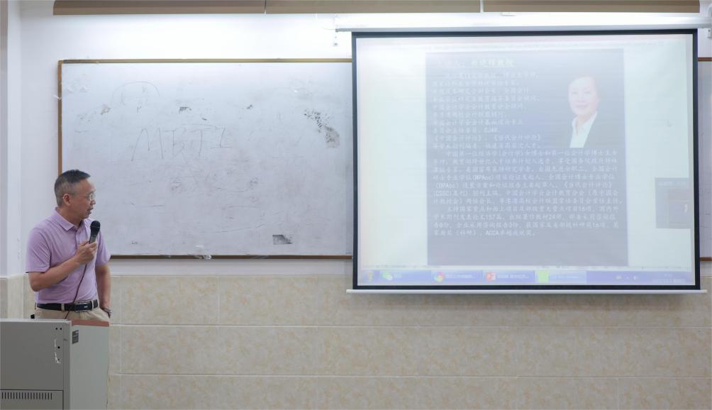 首先,余鹏翼院长对曲晓辉教授的经历和取得的成就进行了介绍:曲晓辉教授是厦门大学的教授和博士生导师,担任国家社科基金学科评审组专家、中国成本研究会副会长等职务。她是中国第一位经济学(会计学)女博士和第一位会计学博士生女导师,享受国务院政府特殊津贴的专家。曲教授在学术界有着丰富的经验和杰出的成就,主持了多项国家级和部级重大重点项目,发表了大量学术论文和著作教材,并获得了多项科研奖项。