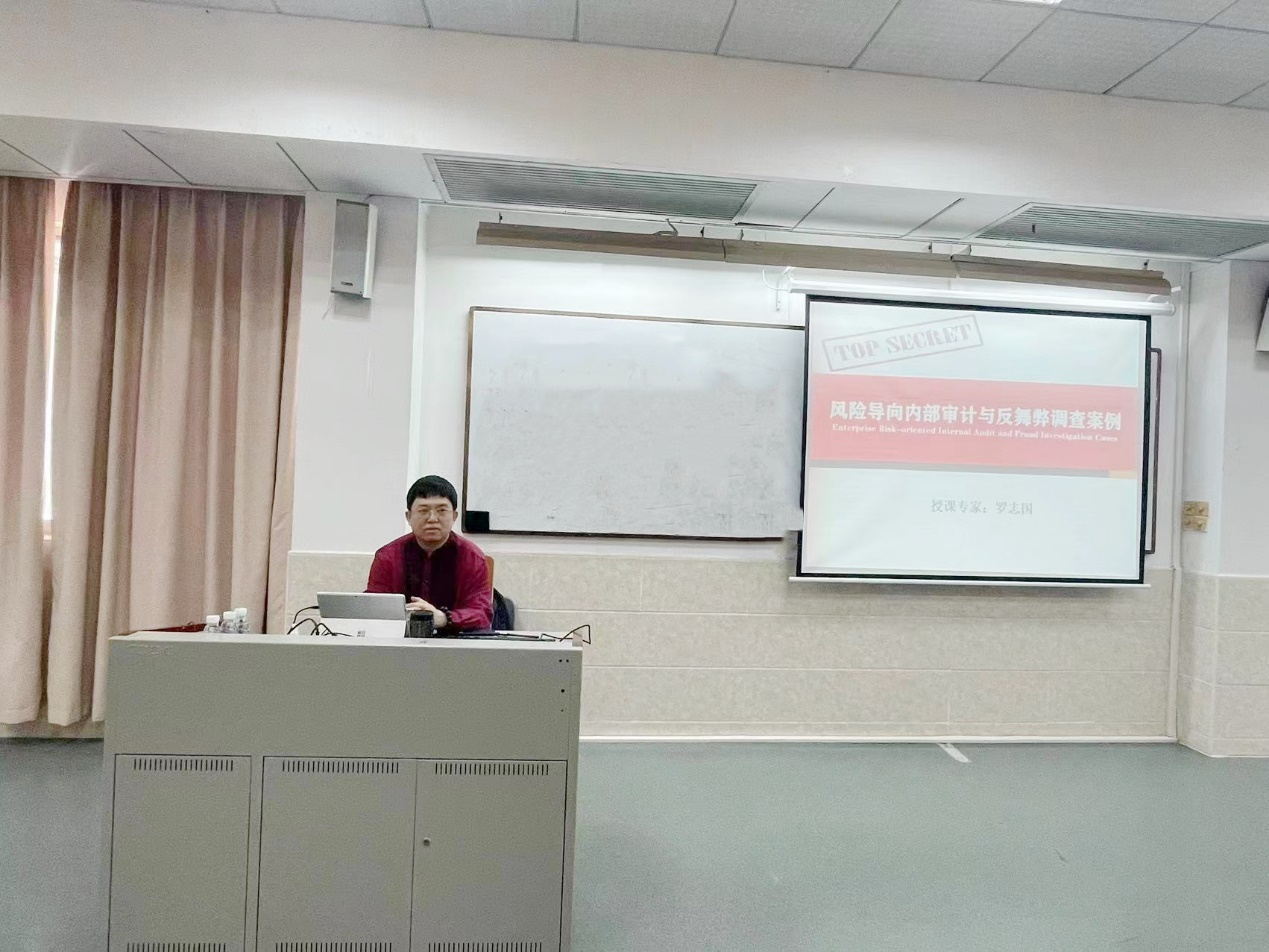 罗志国专家首先以当今世界所面临的严峻挑战和国家“十四五”审计发展规划提到的不断开创审计新局面为开篇,引出了企业内部控制最关键的风险价值观,分享了时下财务、内控和内审人员应该具备的核心素质和能力,启发同学们增强机遇意识和风险意识,认识和把握财务和审计工作的本质,发扬使命价值,增强学习本领。