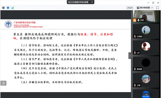会计系主要对双一流本科学科建设进行了学期总结,并鼓励全体教师继续对一流学科建设、学生培养、省级教学团队建设、广外特色优秀教材建设等方面积极支持、贡献力量。