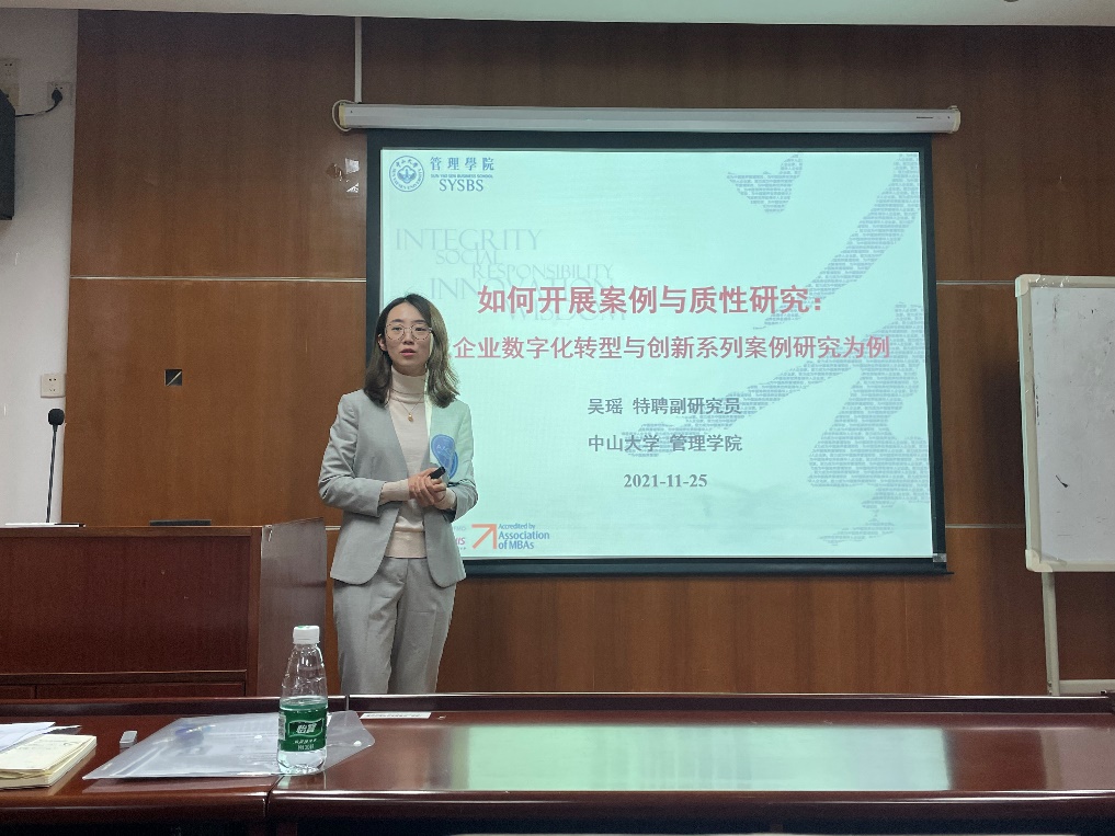 11月25日下午,伟德bv国际体育邀请中山大学管理学院互联网管理创新团队特聘副研究员吴瑶博士作题为《如何开展案例与质性研究——以企业数字化转型与创新系列案例研究为例》的讲座。吴博士从工商管理领域案例研究现状、开展案例研究的基本逻辑、案例研究的难点与应对三方面展开,为伟德bv国际体育师生分享了自己在案例与质性研究方面的经验。本次讲座由曹瑜强老师主持。