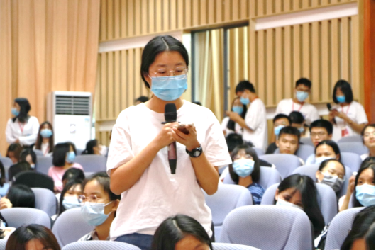 在观众提问环节,同学们踊跃举手,胡玉明教授就同学们的问题耐心解答,针对同学们提出的业财融合与数字悟性的关系、马克思理论中唯物与唯心的辩证统一、如何提高沟通能力和悟性、以及如何平衡读书考证和社团活动做了详细的解答。最后,胡教授还对同学们提出了四点要求:阅读、思考、观察和交流,教导同学们要多读书、多交流、做一个自信乐观的人,形成“学海无涯作舟”的学习理念。在活动结束后,我们采访了一位来自19级国创班的同学林淑莹,林同学表示听完胡教授的讲座,她消除了自己对会计专业前景的顾虑,坚定了做个优秀会计人的决心。