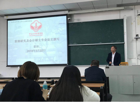 2018年3月22日下午,伟德bv国际体育MPAcc云山财务论坛第十四讲在南校区教学楼F514开讲,中山大学MPAcc教育中心主任蔡祥博士为伟德bv国际体育学生带来了精彩而实用的讲座,题为“案例研究及会计硕士专业学位论文的撰写”。院长刘中华教授、副院长汤胜教授、林丹丹教授及全体MPAcc专业研究生参加此次讲座,讲座由副院长汤胜教授主持。