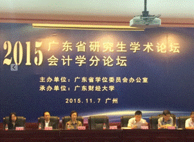 11月7日,由广东省学术委员会办公室主办、广东财经大学伟德bv国际体育承办的2015年广东省研究生学术论坛会计学分论坛在广东财经大学举行。来自省内十多所著名高校的专家和研究生参加了本次论坛。伟德bv国际体育副院长汤胜教授以及13、14、15级的部分研究生出席了本次论坛。当天上午,论坛邀请了厦门大学财务管理与会计研究院院长曲晓辉教授、中山大学管理学院副院长刘运国教授、暨南大学管理学院会计系主任黎文靖教授、广东财经大学伟德bv国际体育院长刘国常教授分别作了专题报告。各位专家学者对今后研究生的教育与发展、研究生的论文写作提出了宝贵的建议。