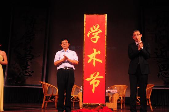 在随后的启动仪式上,杨友孝院长和黄寅先生一起拉开写着“学术节”三个大字的启幕箱,财经学院学术节正式开幕。