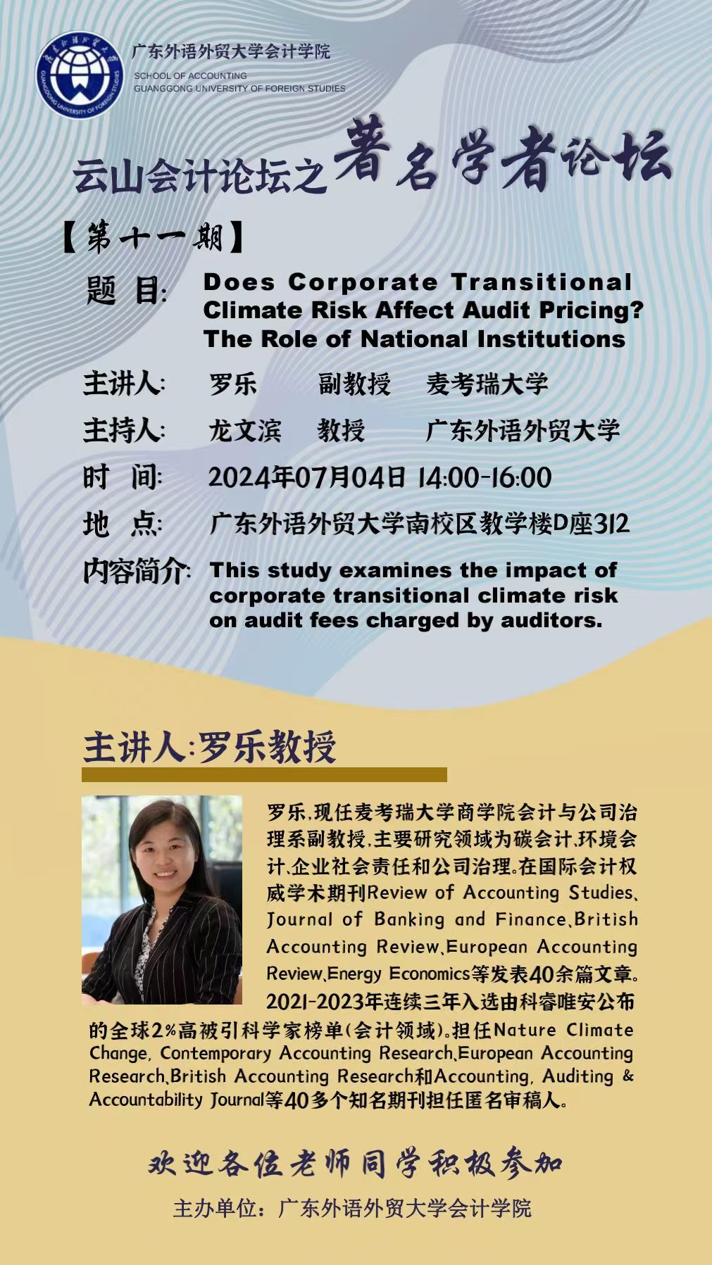 【讲座预告】云山会计论坛 第十二期