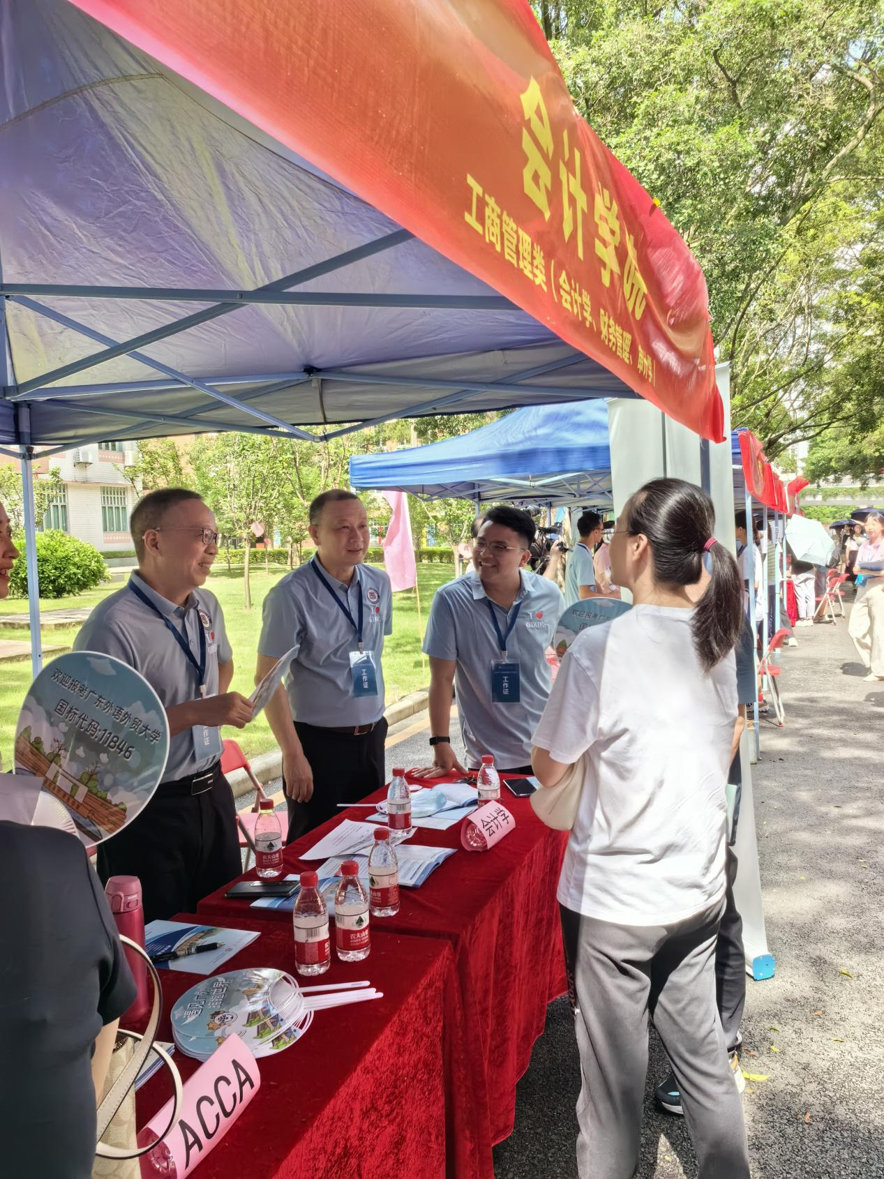 6月26日下午,学院会计系系主任曹瑜强副教授、辅导员应涵宇老师前往广东仲元中学开展招生宣传活动。两位老师为前来咨询的考生及家长答疑解惑,并介绍学校的办学特色、招生亮点和政策,进行一对一专业咨询服务,积极鼓励考生结合自身专长和兴趣选择广外作为自己的优先志愿,现场气氛热烈。