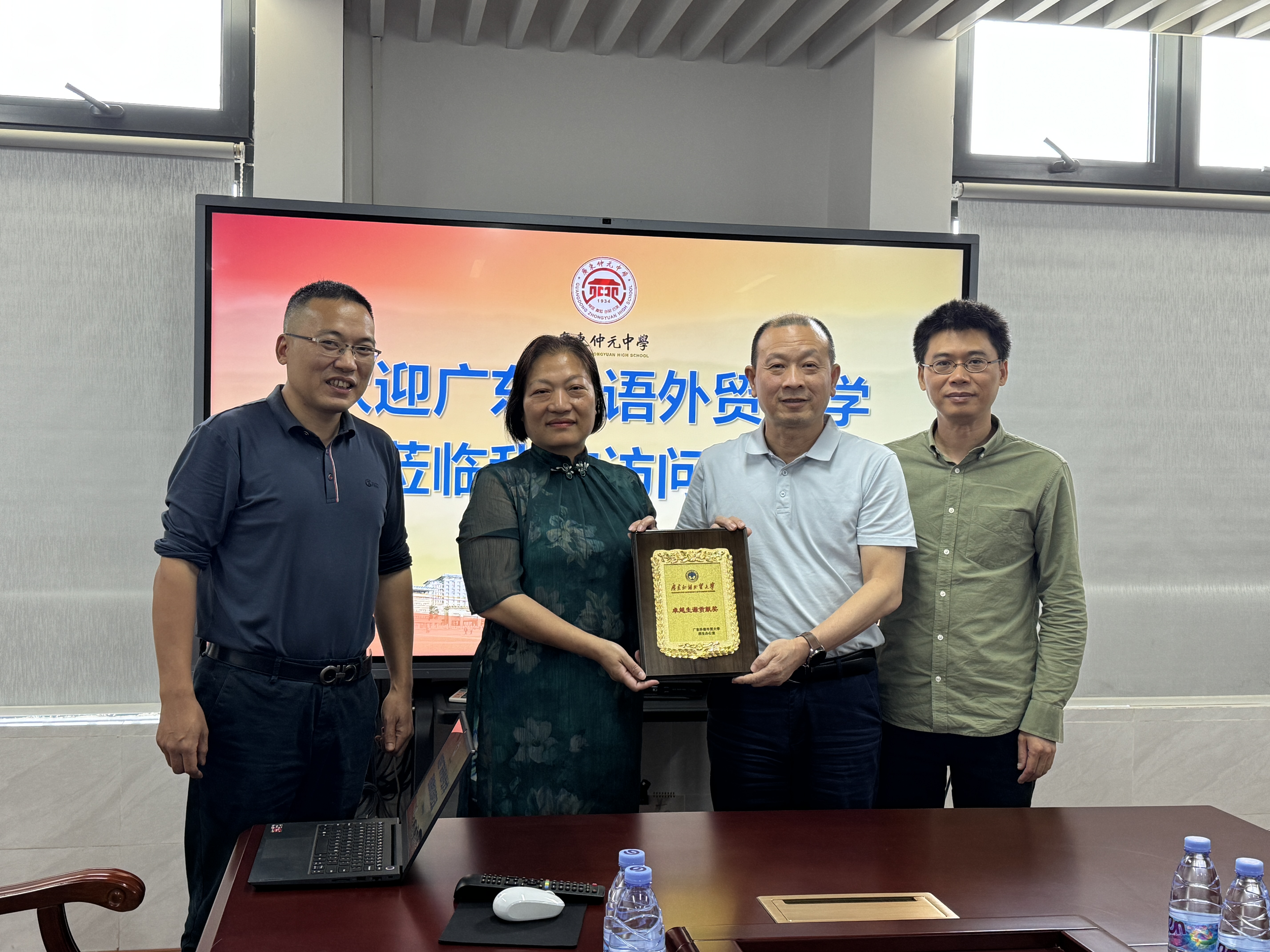 4月16日,伟德bv国际体育党委书记黎冬、副院长黄浩、教务秘书王秋云前往广东仲元中学开展一系列本科招生宣传活动。招宣组与广东仲元中学校领导、教师代表进行交流座谈,并颁发“卓越生源贡献奖”。