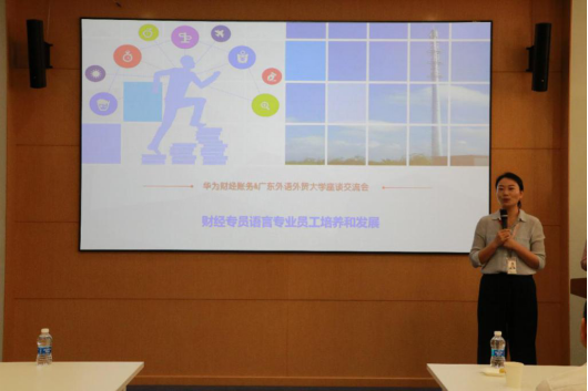 东莞松山湖总部基地是华为公司的主要研发和办公场所,基地建设运用了生态建设技术。短暂参观后,华为财经与伟德bv国际体育师生开展了以“财经专员语言专业员工培养和发展”为主题的座谈交流会,本次交流会由范佳女士主持。