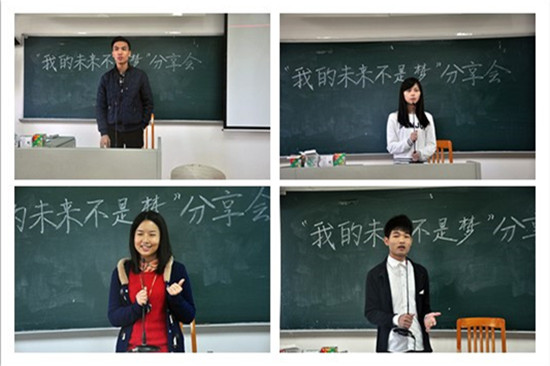 12月15日下午2:30,由伟德bv国际体育学工办主办,伟德bv国际体育党建小组,伟德bv国际体育团委学生会,伟德bv国际体育校友团队,伟德bv国际体育自强社协办的伟德bv国际体育职业辅导月系列活动,“我的未来不是梦”分享会在南校区教学楼G308举行。伟德bv国际体育党委副书记黄晓梅老师,伟德bv国际体育团委书记周雅颂,辅导员沈长霞,邓海清,丁建新老师出席了本次分享会。肖涛师兄,李妍师姐,聂梦莎师姐,张裕灵师兄向伟德bv国际体育的师弟师妹分享了宝贵经验。