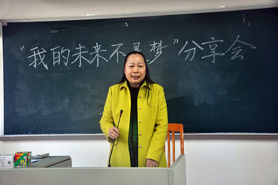 分享会开始,党委副书记黄晓梅老师讲话。老师首先分析了如今就业和创业形势,并提出了对学生的几个要求:要提高学习综合能力,诚信就业,个人发展要和单位发展结合起立,要培养吃苦耐劳的精神。